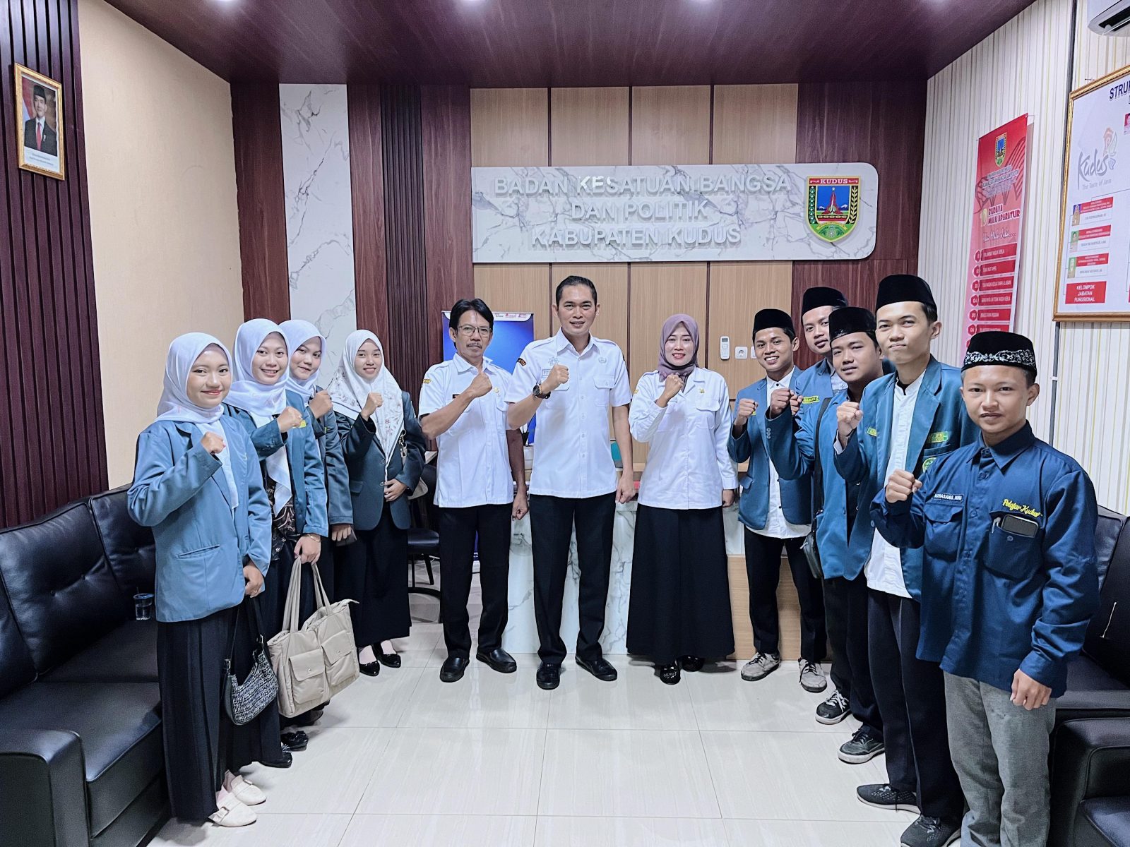 Pelajarkudus.com- PC IPNU IPPNU Kudus menggelar audiensi dengan Badan Kesatuan Bangsa dan Politik (Kesbangpol) Kabupaten Kudus. Audiensi ini dilaksanakan pada selasa 21 Mei 2025 yang disambut hangat oleh Kepala Badan Kesbangpol Moh. Fitriyanto yang akrab disapa Pak Aan, bersama Handoko selaku Kepala Bidang Organisasi Kemasyarakatan dan Sri Suwanti selaku Kepala Bidang Politik Dalam Negeri dan Ormas.