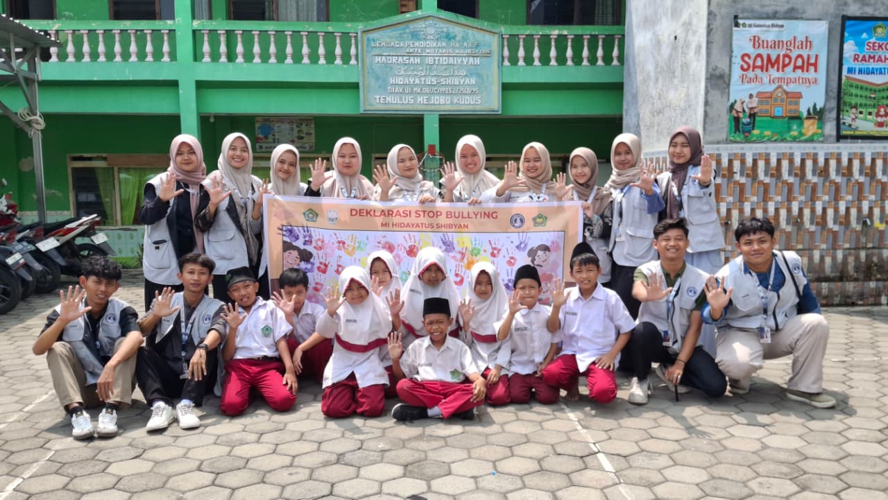 Pelajar Kudus – Selasa, 12 Agustus 2025. Mahasiswa KKN Moderasi Beragama UIN Sunan Kudus kelompok 115 menggelar kampanye anti-bullying di MI Hidayatus Sibyan Mejobo, Kudus. Kegiatan yang diikuti siswa kelas 4 sampai kelas 6 ini mengusung slogan “Bersama Stop Bullying, Bangun Solidaritas!” yang merupakan program kerja pencegahan bullying di lingkungan sekolah.
